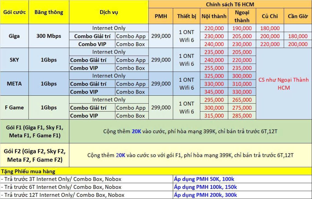 FPT Telecom là một trong những nhà cung cấp dịch vụ viễn thông lớn nhất tại Việt Nam với hơn 80 chi nhánh tại các tỉnh thành và toàn quốc. Trong đó, TP.HCM được xem là khu vực trọng điểm được áp dụng nhiều chính sách khuyến mãi hấp dẫn nhất. Các gói cước này có băng thông tối thiểu từ 300Mbps, tối đa có thể lên tới 10Gbps, cao hơn so với các nhà cung cấp khác trên thị trường với mức giá cạnh tranh. Chính sách mới được chính thức áp dụng kể từ ngày 1/1/2023.